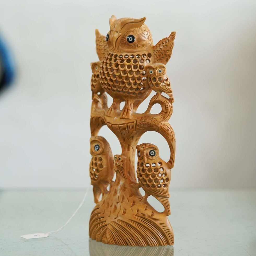 Add a touch of charm to your home decor with our handcrafted wooden owl stand. This delightful piece combines whimsy with functionality, serving as both a decorative accent and a practical stand. Made from high-quality wood and meticulously carved, the owl design adds character to any space. Use it to display small plants, trinkets, or even your phone or tablet. Whether placed on a shelf, desk, or countertop, this owl stand is sure to be a conversation starter. Treat yourself or someone special to this unique and versatile decor piece today.
